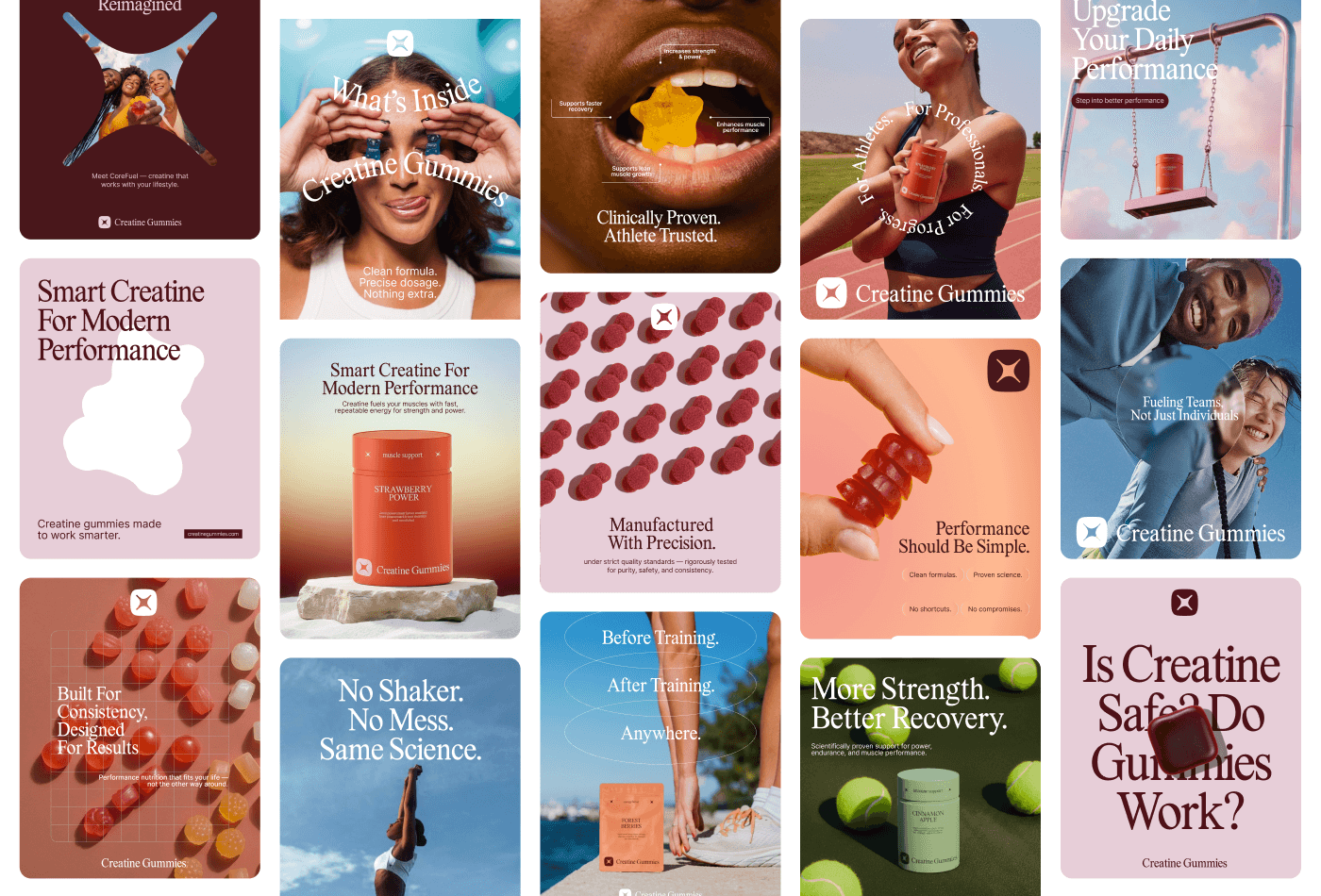 Creatine Gummies is a refined sports nutrition media pack built for performance-driven brands and athletes that operate with precise dosing, scientific reliability, and high standards of physical efficiency.